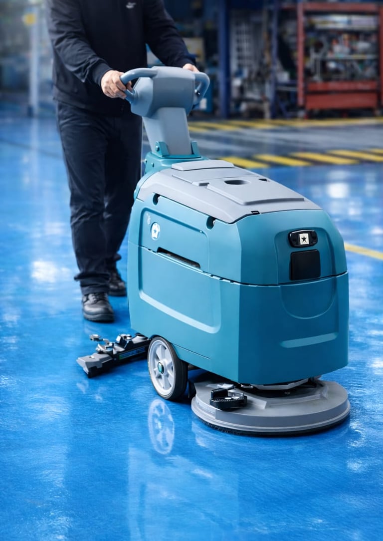 La F43 está diseñada para adaptarse a distintos tipos de pisos industriales y comerciales, ofreciendo estabilidad, facilidad de manejo y resultados constantes en jornadas de limpieza prolongadas.